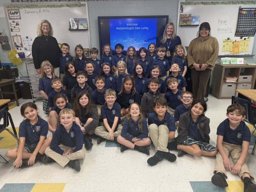 Second graders visited with Meteorologist, Sam Lucey of WXXV, to learn why the weather is important, and how to give a forecast. After a question and answer period, students were able to imitate being a meteorologist in the classroom!