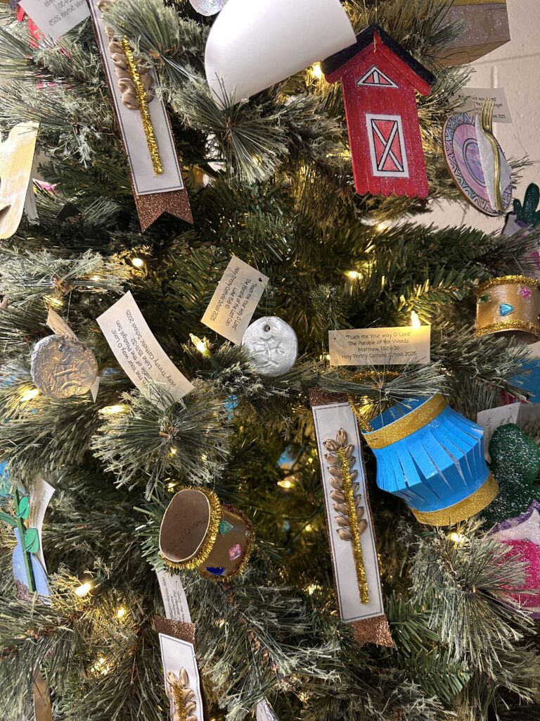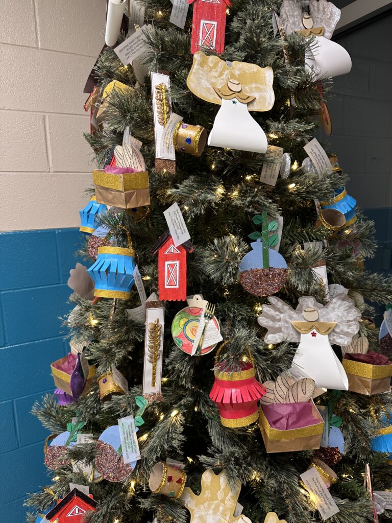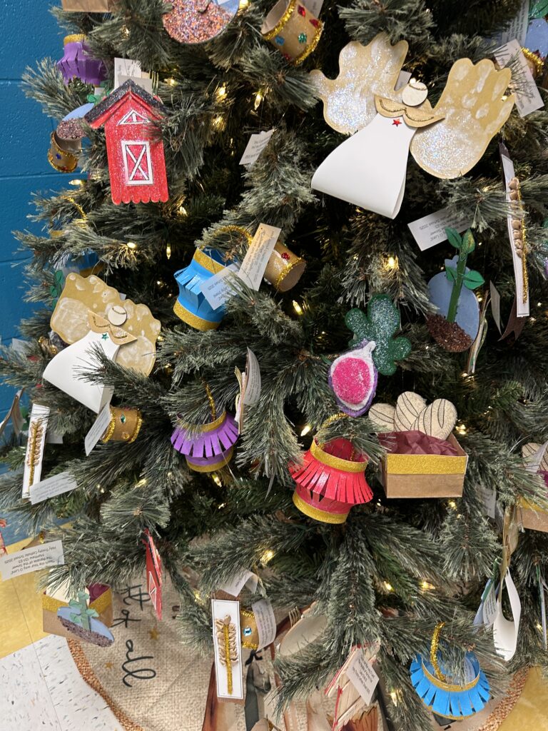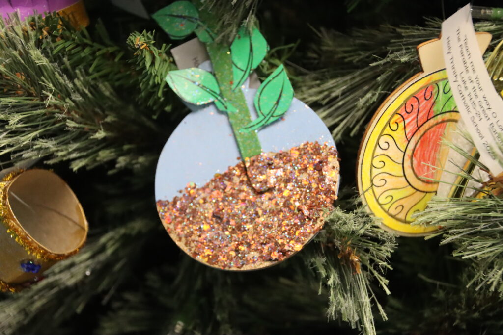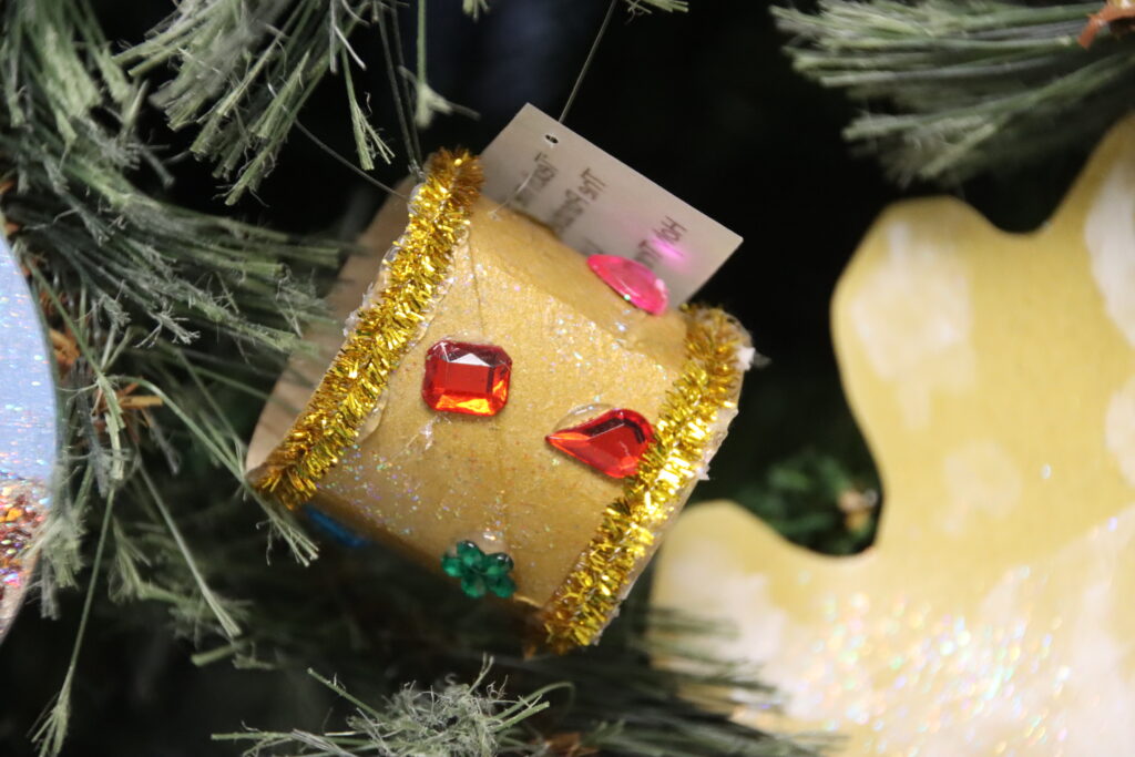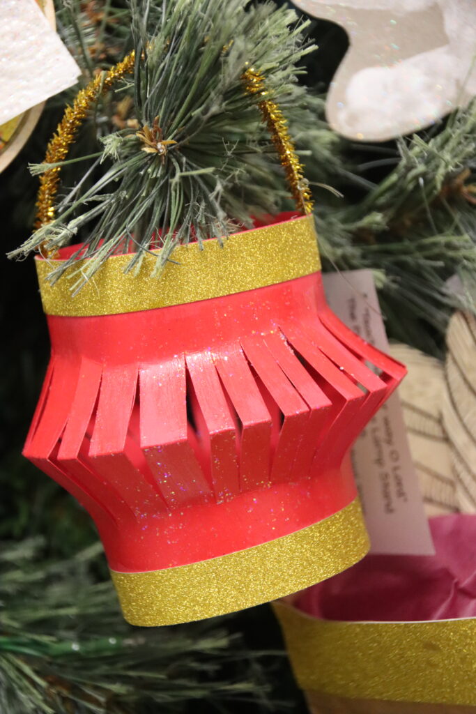 The theme of this year’s Christmas tree is “Teach me Your way, O Lord,” – Psalm 86:11. The ornaments were symbols to represent parables from the Bible.