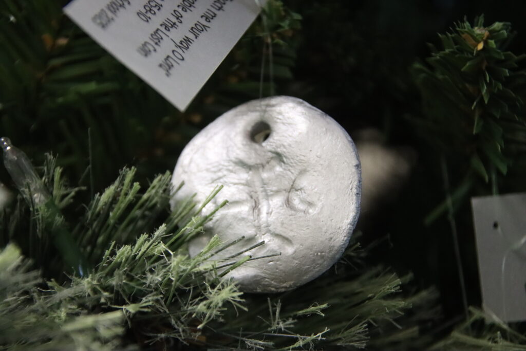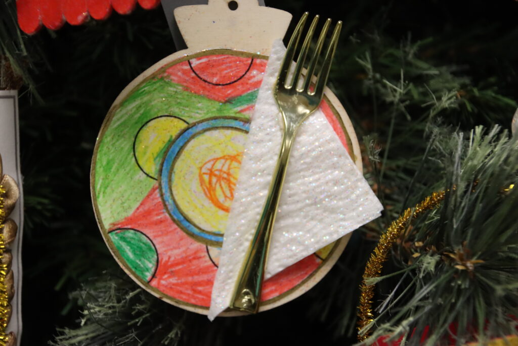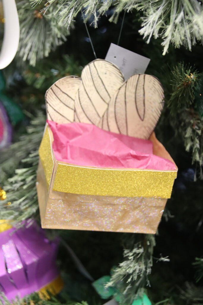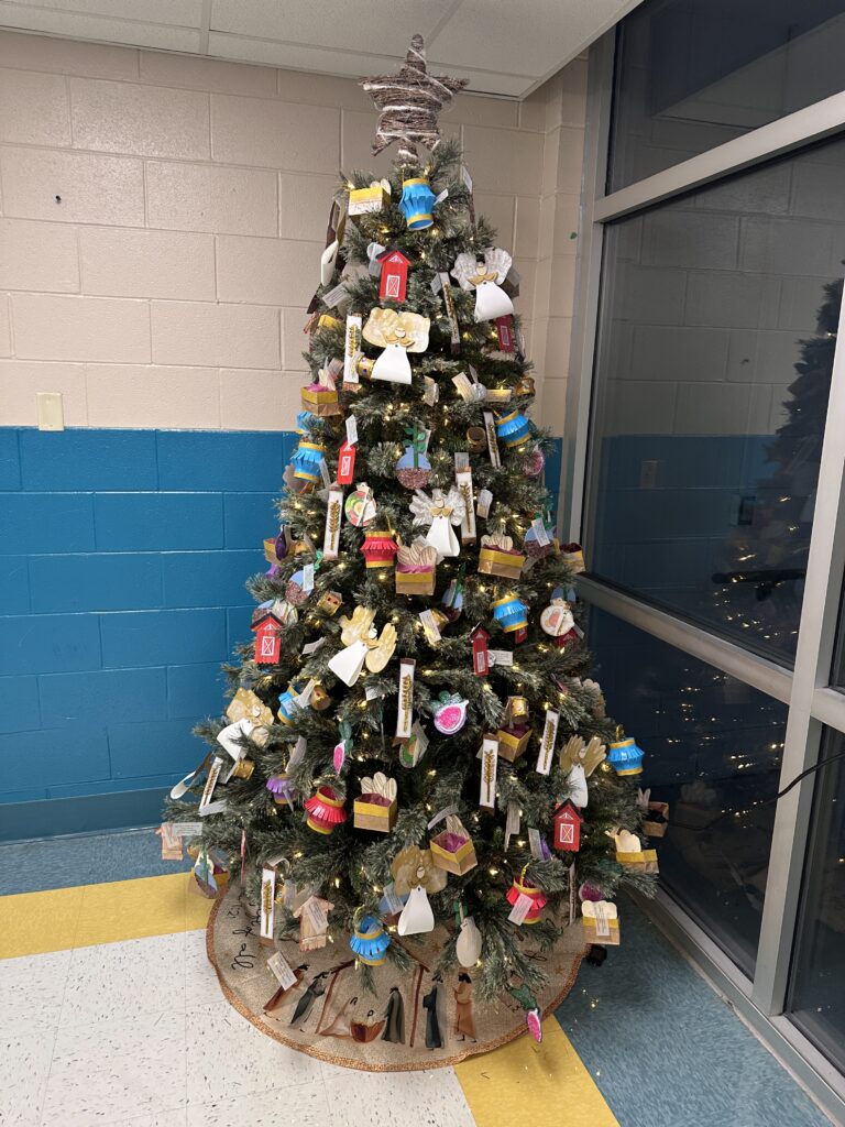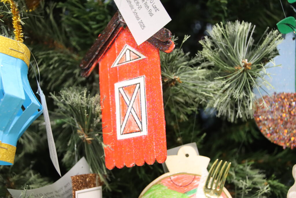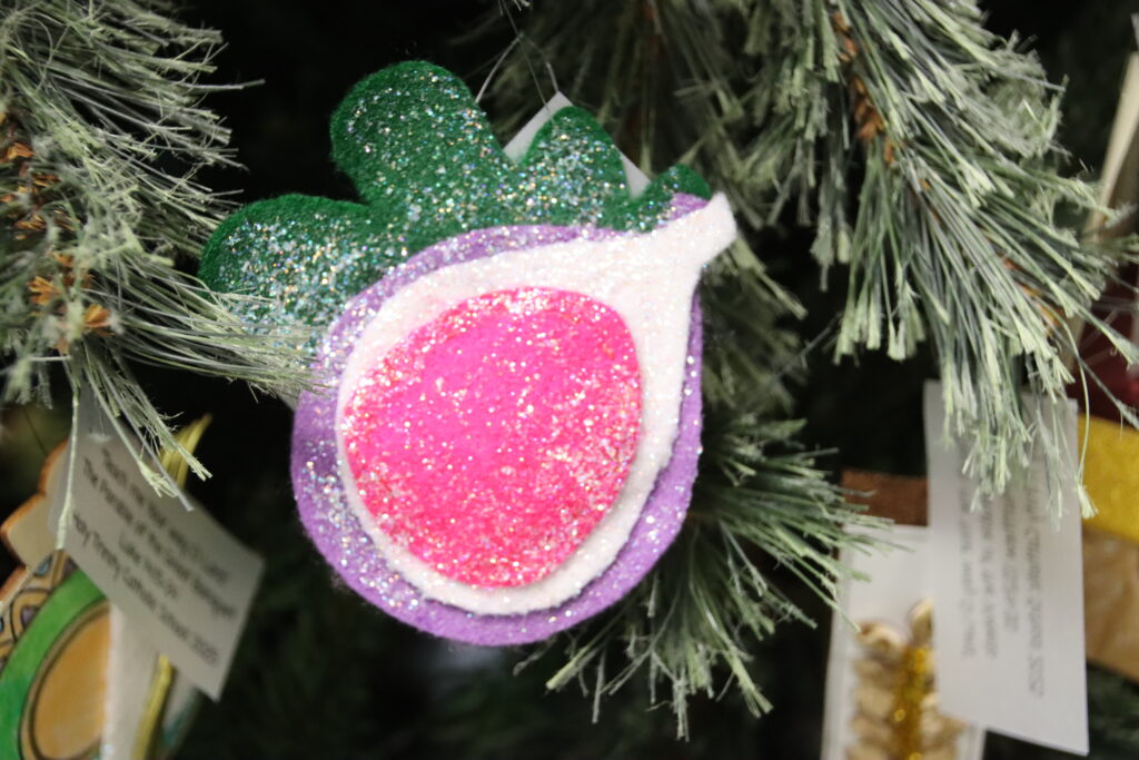 The theme of this year’s Christmas tree is “Teach me Your way, O Lord,” – Psalm 86:11. The ornaments were symbols to represent parables from the Bible.